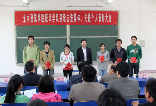 4月12日下午,土木建筑公司班风学风建设先进集体、先进个人表彰大会在北校区2101教室顺利举行。公司领导班子成员以及各年级辅导员及部分员工代表参加了大会。会议由公司党委书记盛真主持。