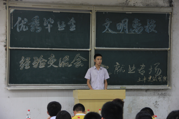 交流会上,来自2009级优秀毕业生代表就各自在参加选调生、国家公务员报考,国内外知名建筑企业求职等经历与在场同学进行了交流和分享。2009级土木工程专业8班胡慧航同学选择了求职就业,目前已经签约中铁二十四局,作为求职同学的代表,胡慧航与现场同学分享了自己实习、求职、面试的具体经历、经验教训及感悟心得,介绍了求职、面试的技巧以及应该注意的细节等问题。已签约到中铁四局的李坤同学;将赴淮南矿业集团工作的郑亮亮同学;参加安徽省“选调生”招考,现已通过笔试、面试的张磊、吴炎同学;已录取到四川省巴中市行政管理局的倪琴等同学先后发言。“精心准备、敢于尝试”是学长们留给学弟学妹们的深切忠告。